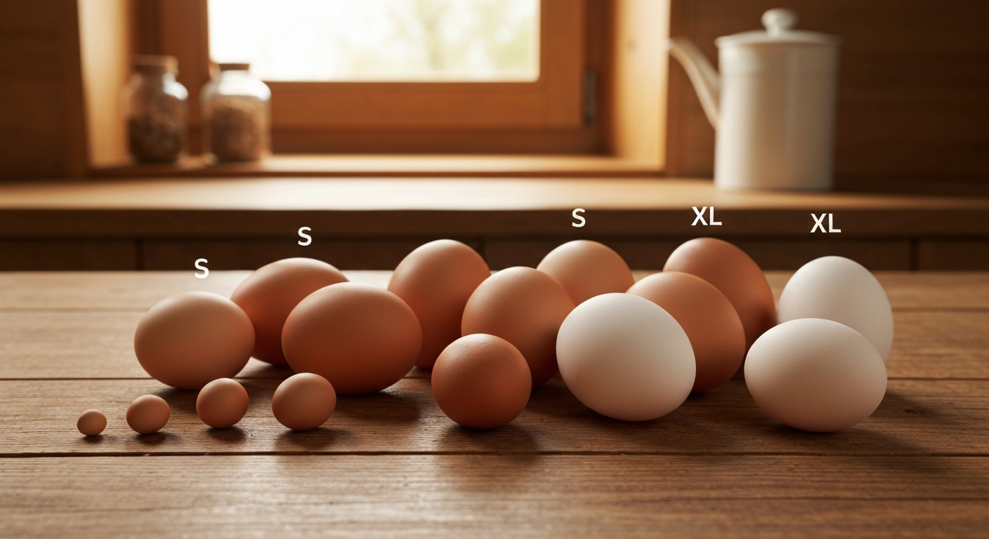Jajka są dzielone na różne kategorie wagowe, co znacznie ułatwia ich użycie w kuchni. Istnieją cztery klasy: